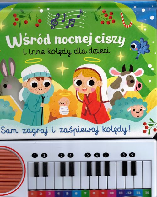 Siedem popularnych, znanych od pokoleń najpiękniejszych polskich kolęd, siedem uproszczonych zapisów nutowych oraz pianinko, na którym dziecko może zagrać wszystkie zamieszczone w książce utwory. Ta książka to nie tylko hołd w stronę tradycji śpiewania kolęd, ale i sposób na zachęcenie dziecka do nauki gry na instrumencie. W książce znajdują się zapisy nutowe następujących kolęd: Przybieżeli do Betlejem, Lulajże, Jezuniu, Wśród nocnej ciszy, Gdy się Chrystus rodzi, Cicha noc, Pójdźmy wszyscy do stajenki i Bóg się rodzi. [bonito.pl]